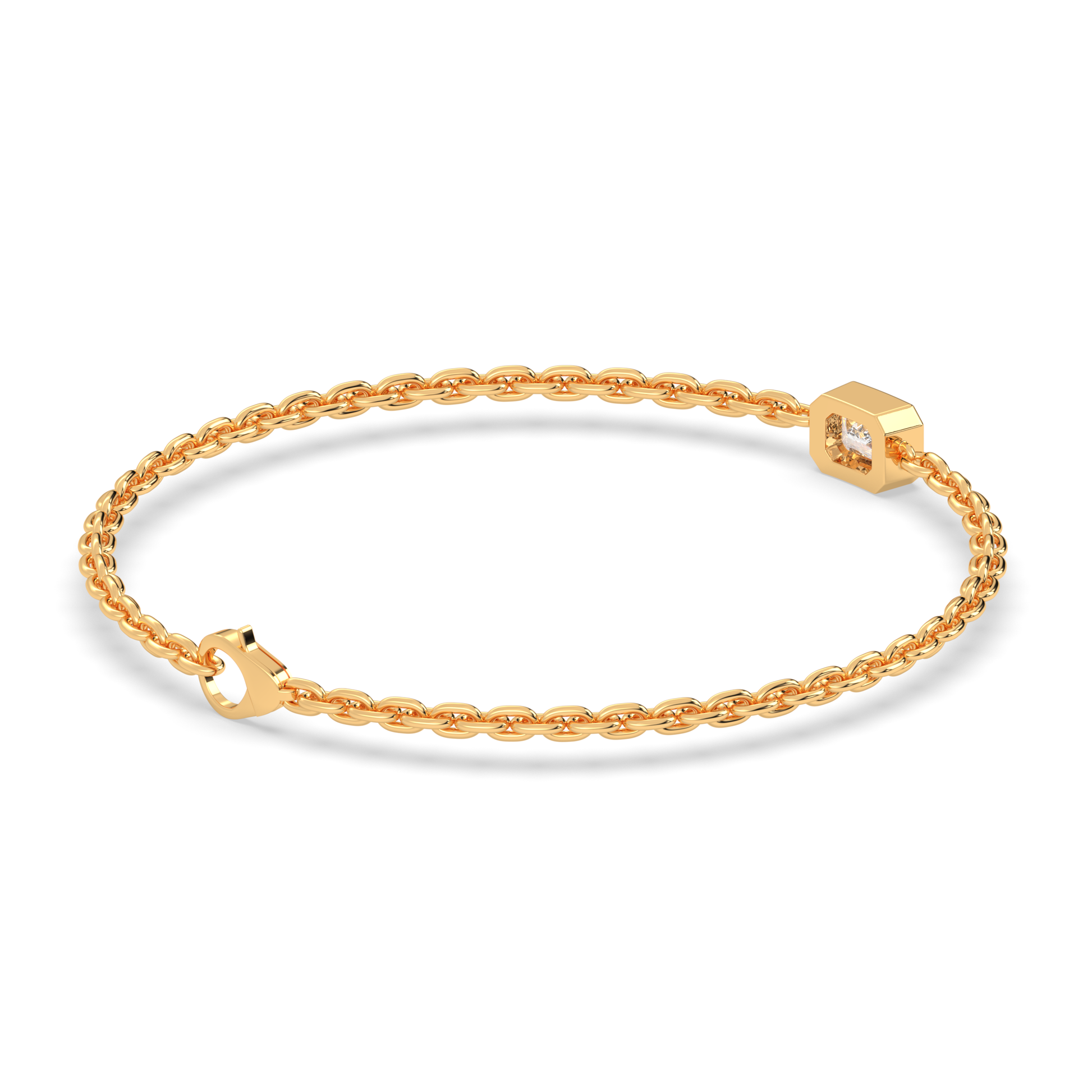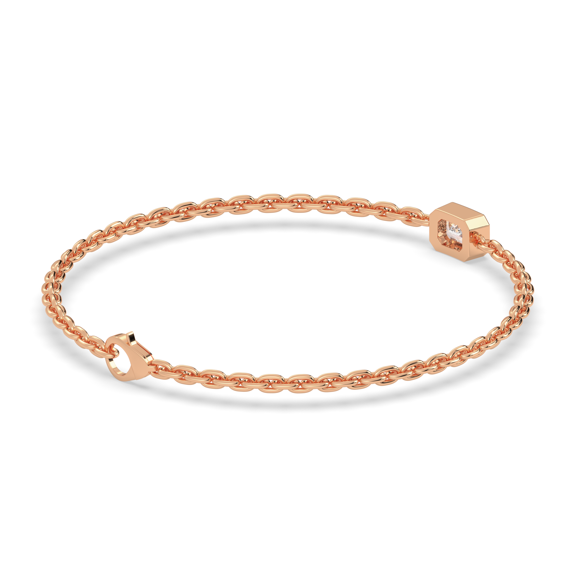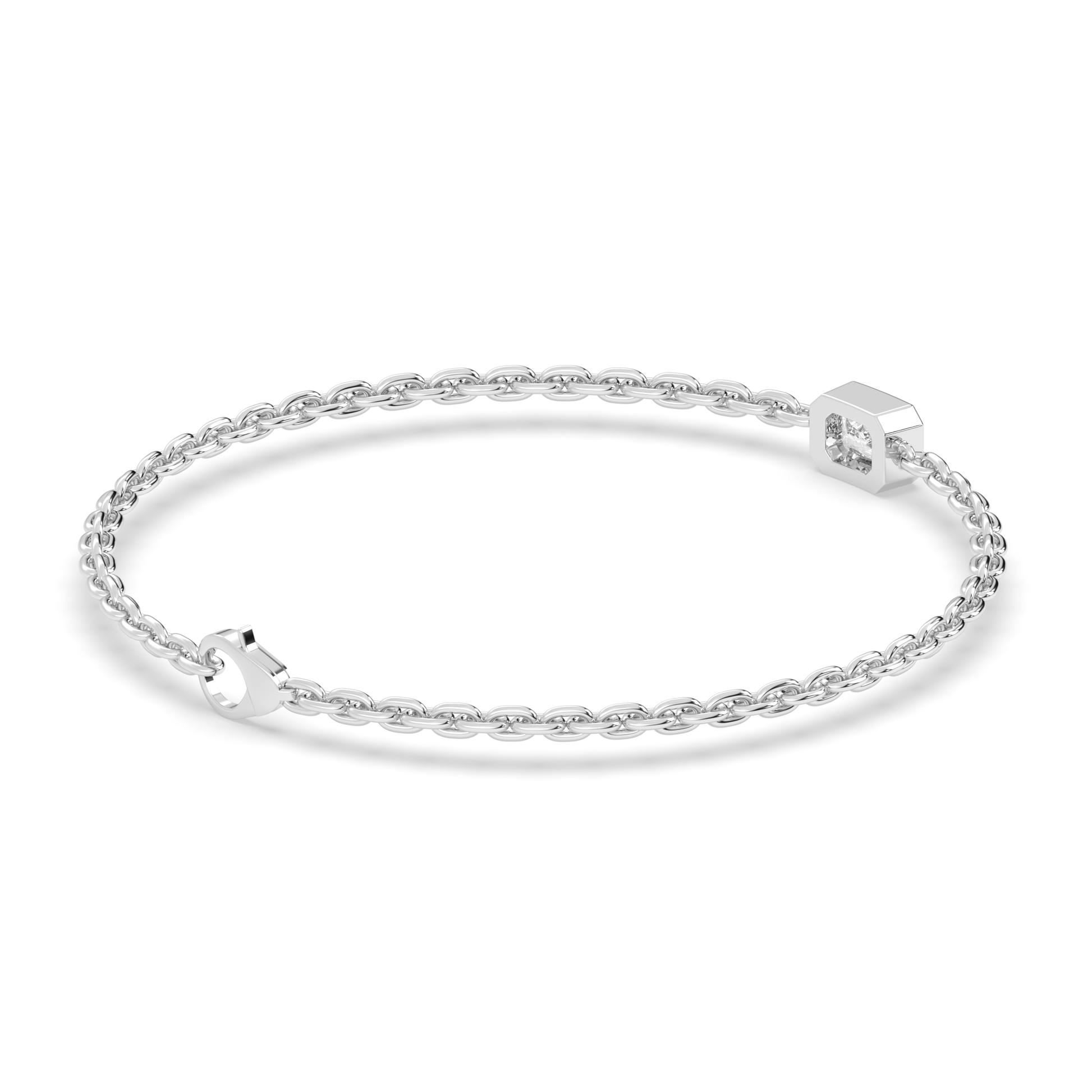This delicate and modern bracelet features a sleek, cable-link chain with a stunning centerpiece. A brilliant emerald-cut lab-grown diamond is beautifully set in a minimalist bezel, creating a clean and elegant look. This versatile piece is perfect for adding a touch of understated luxury to any outfit.