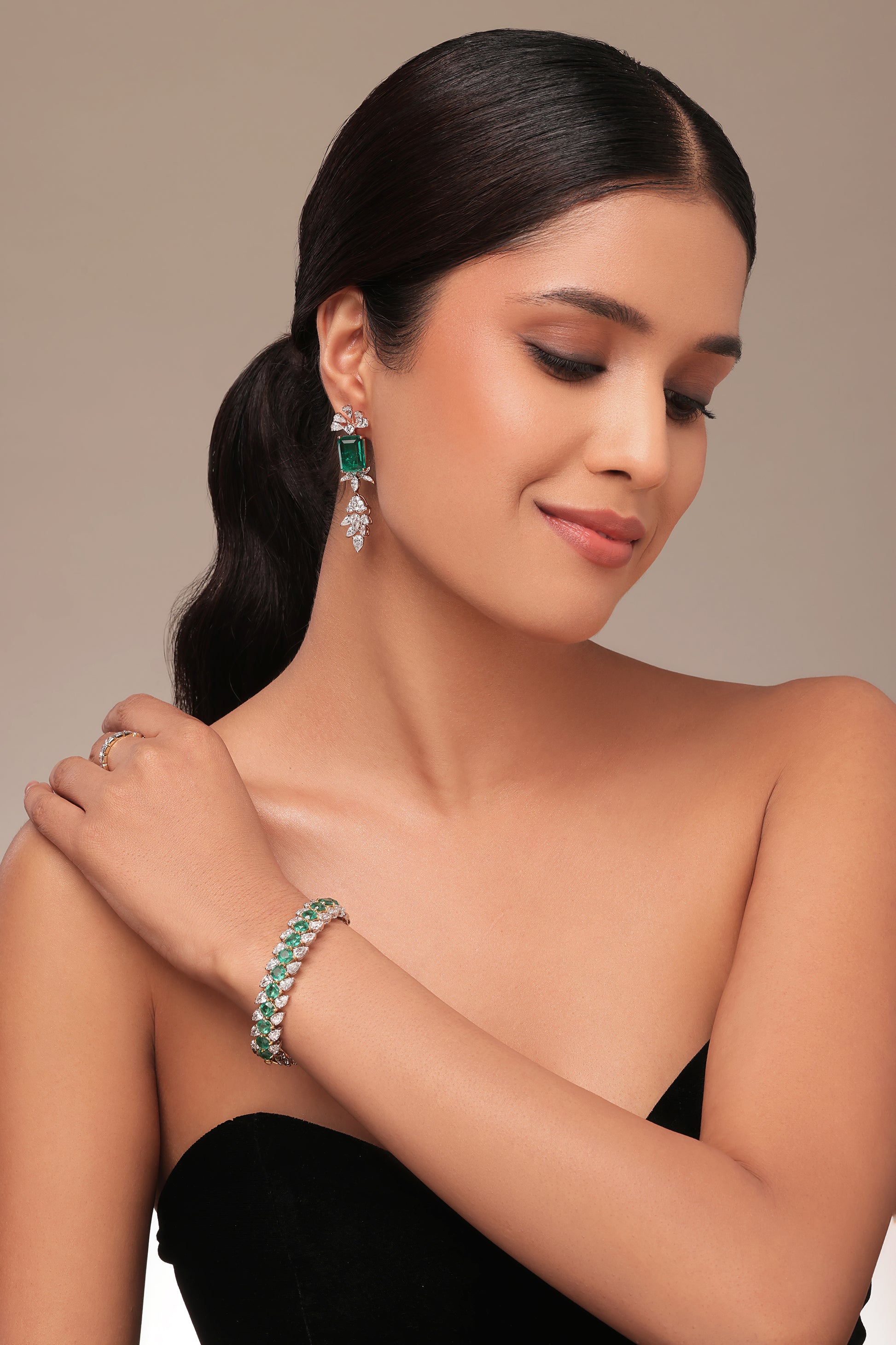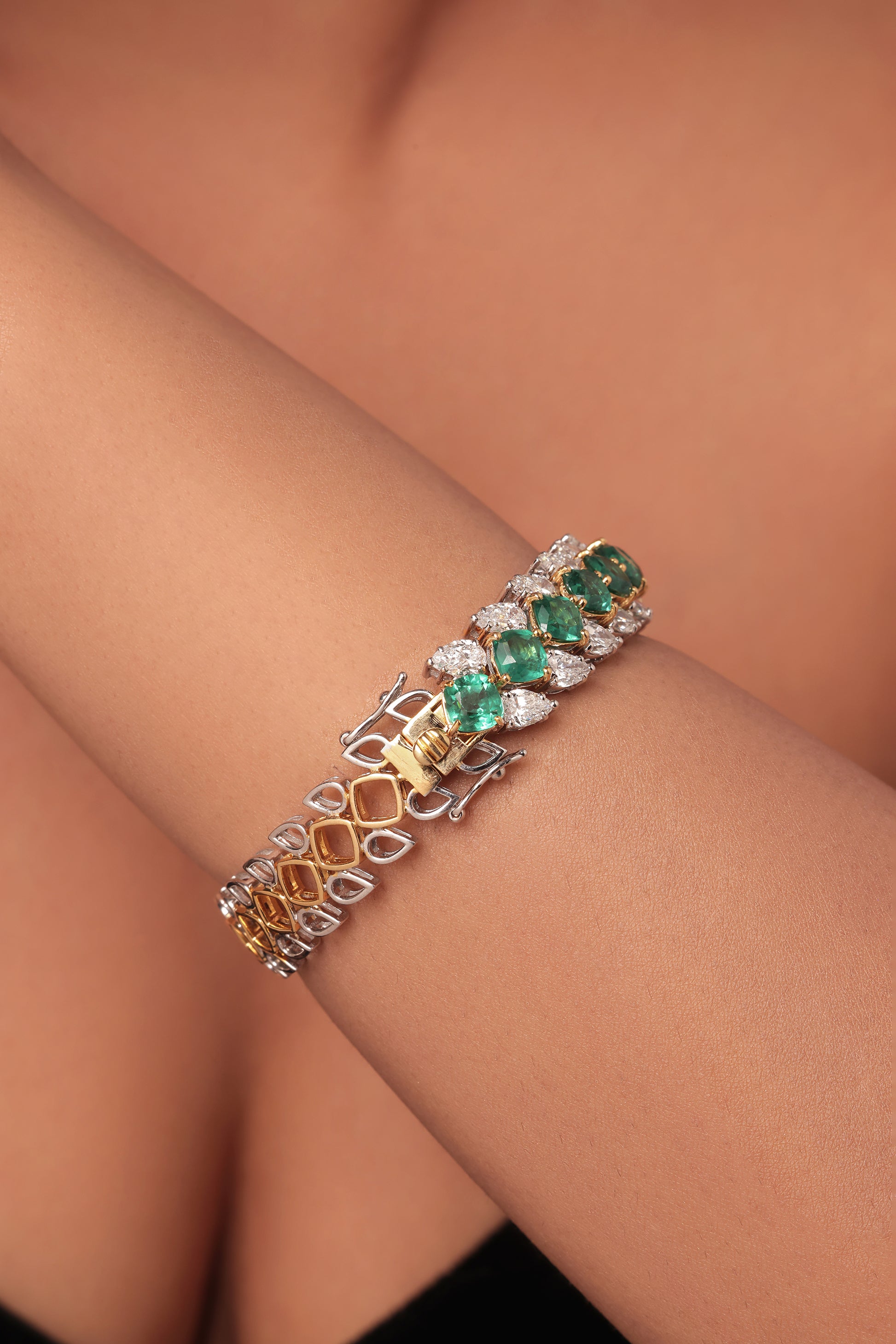 Emerald stone & pear diamond Oval Bangle