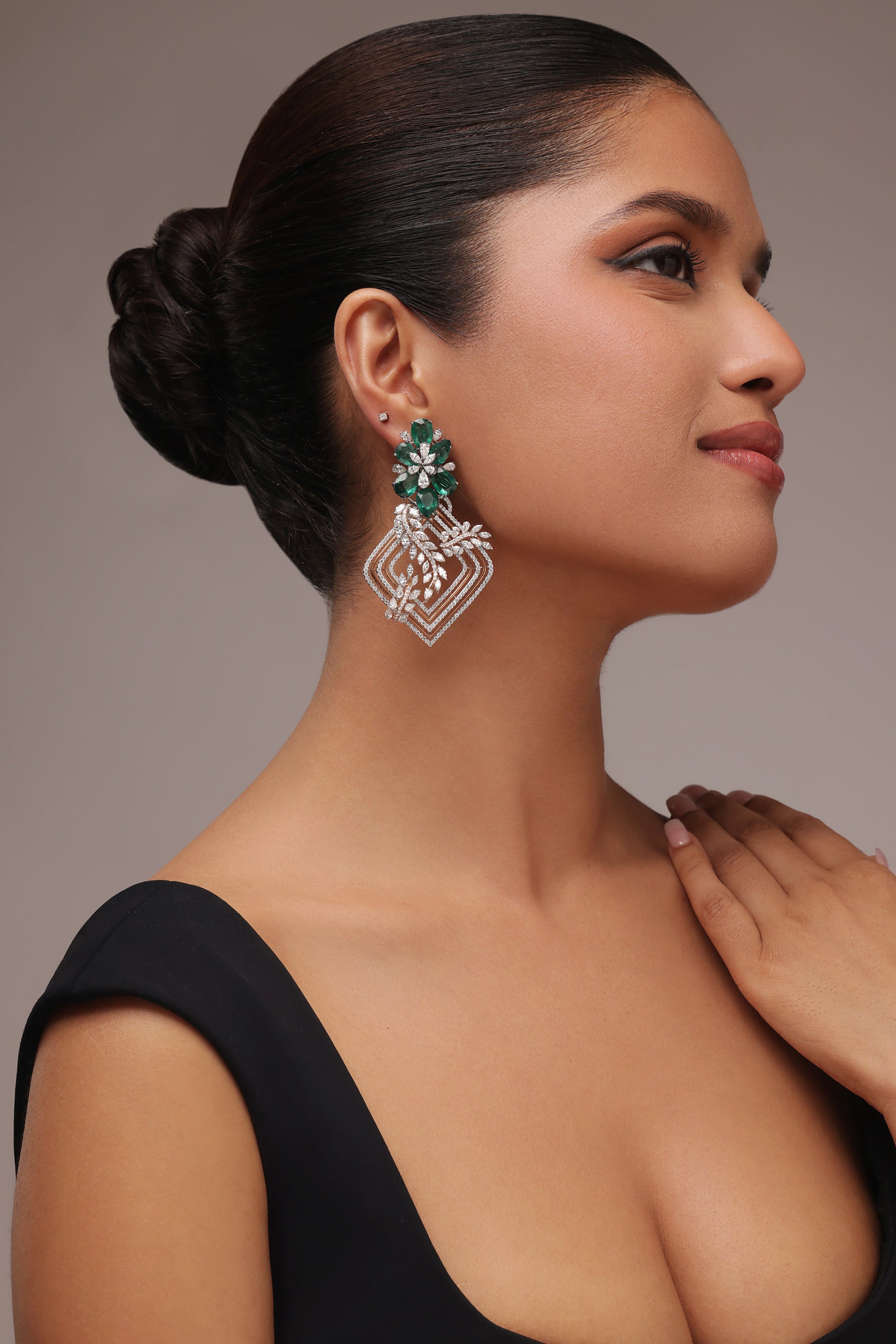 Green Pear stone and marquise diamond earrings