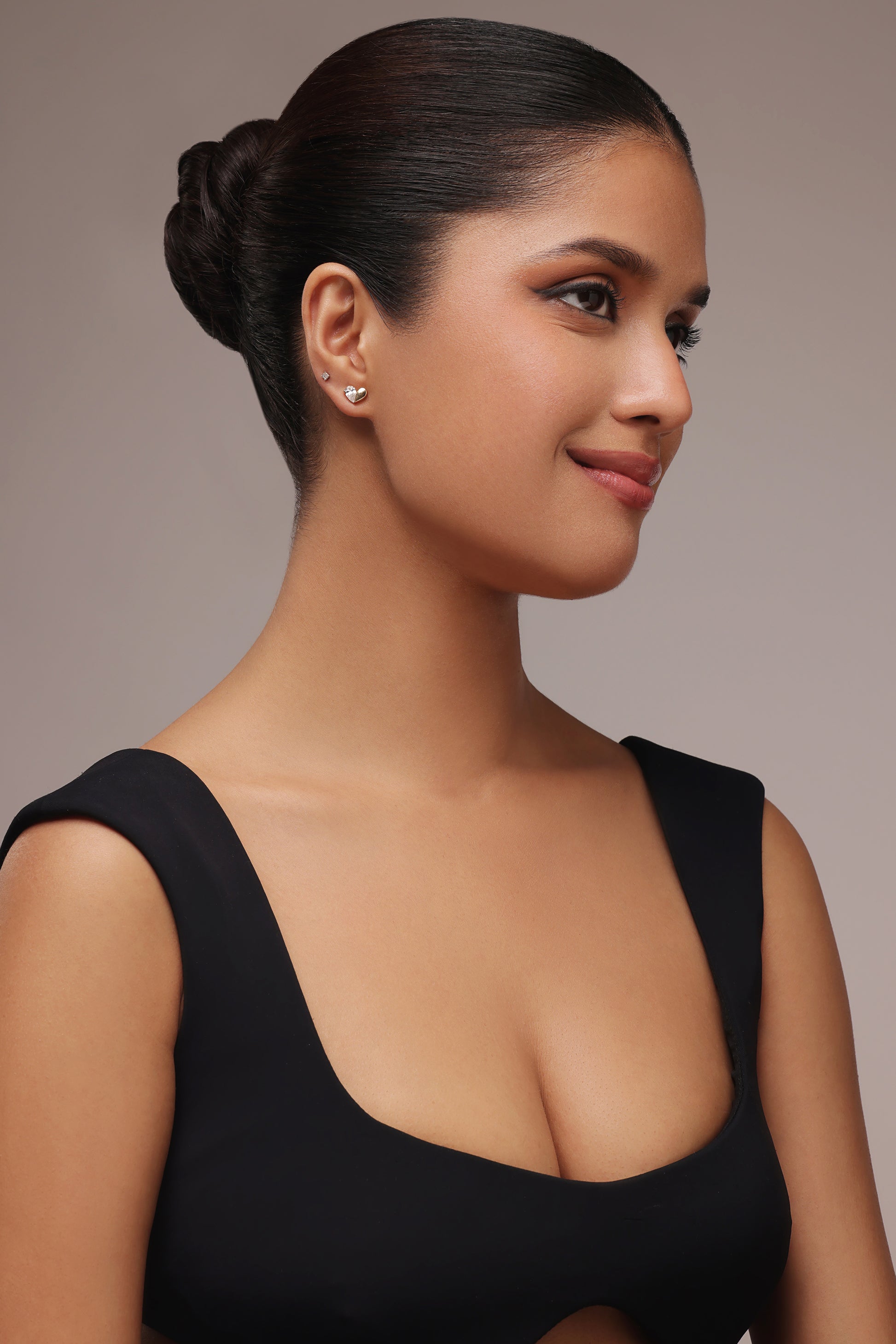 This unique pair of earrings features a modern and romantic design. One half of the heart is a sparkling pear-shaped lab-grown diamond, while the other half is crafted from polished solid gold, creating a beautiful two-tone effect. The combination of the brilliant diamond and the sleek gold makes these a standout accessory, perfect for adding a touch of elegant charm to any look.