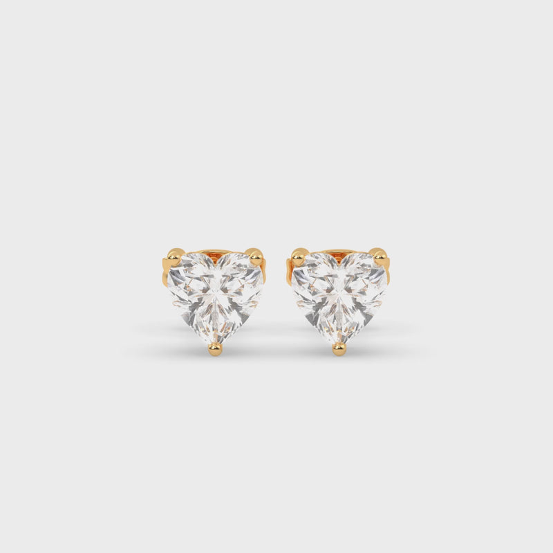 These elegant heart-shaped solitaire earrings feature brilliant, ethical lab grown diamonds set in warm yellow gold. Get the breathtaking brilliance of a diamond—responsibly. Perfect for everyday luxury or a meaningful gift.