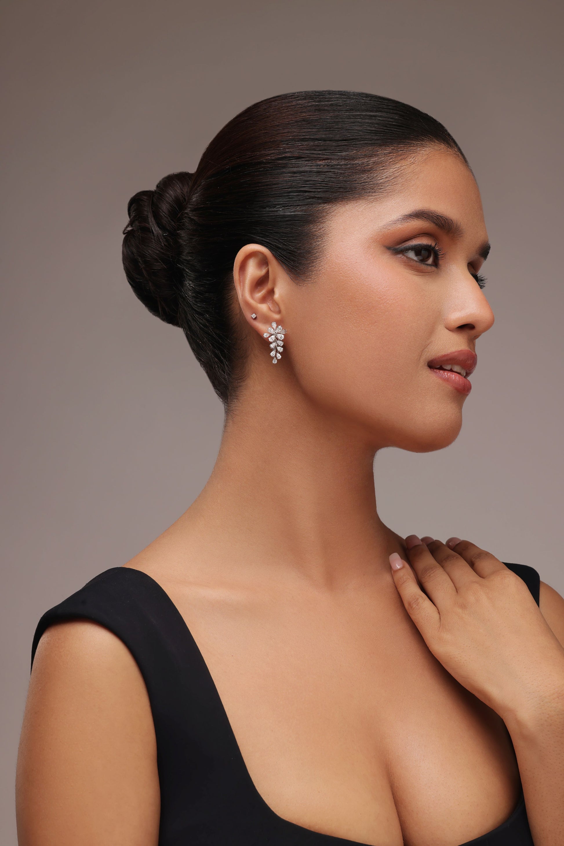 This exquisite pair of drop earrings features a stunning arrangement of pear-shaped lab-grown diamonds. Each earring showcases a captivating cluster of pear-shaped diamonds that elegantly dangles, creating a beautiful and dynamic cascade of brilliance. The design offers a modern twist on a classic silhouette, perfect for making a sophisticated statement.