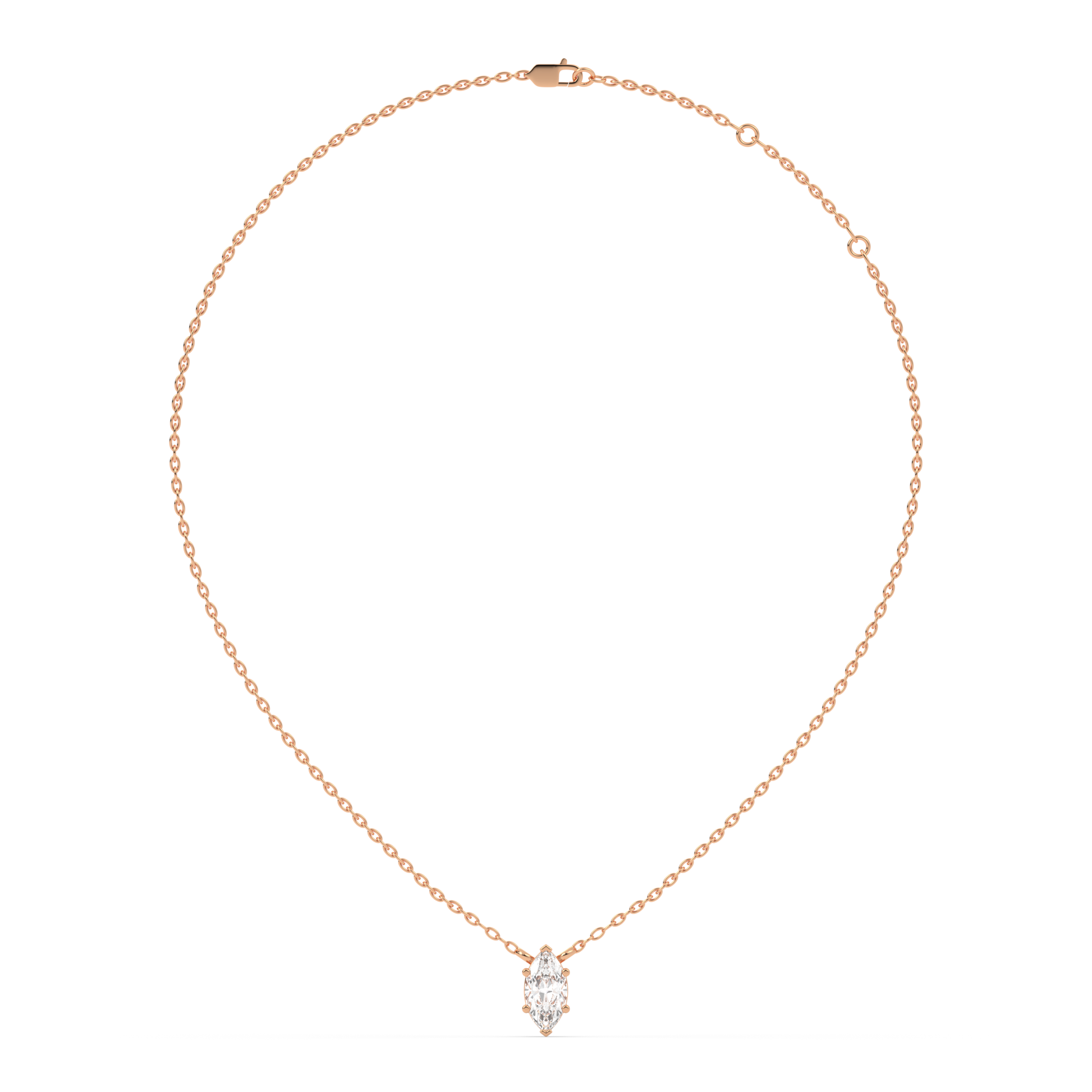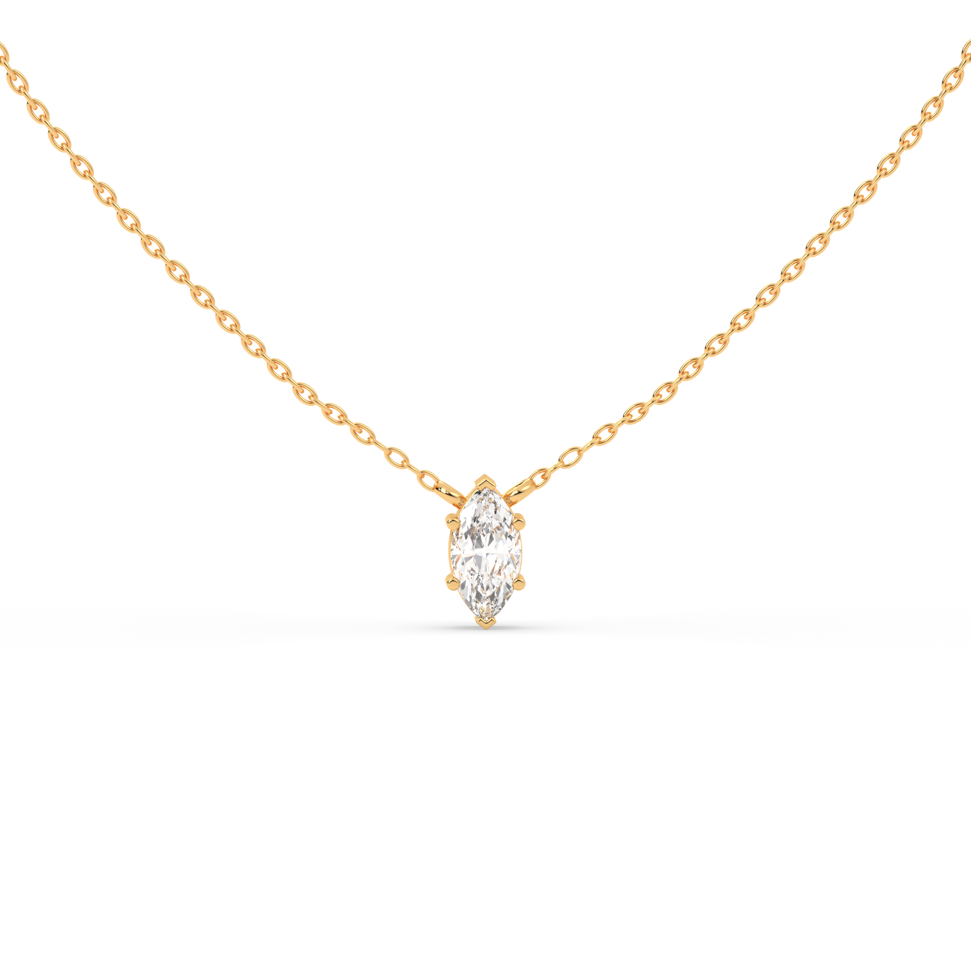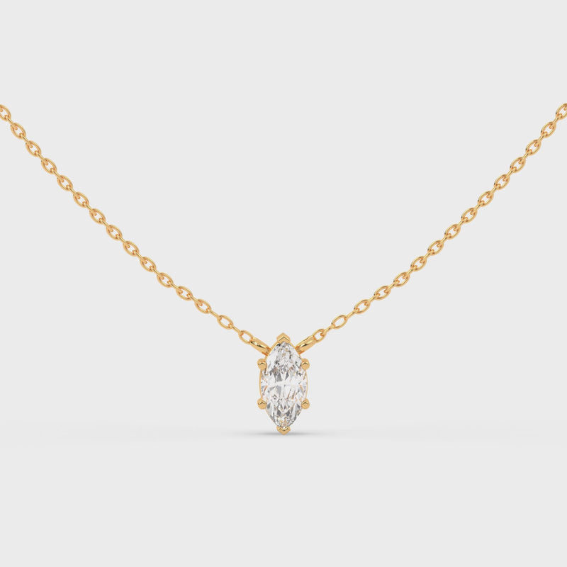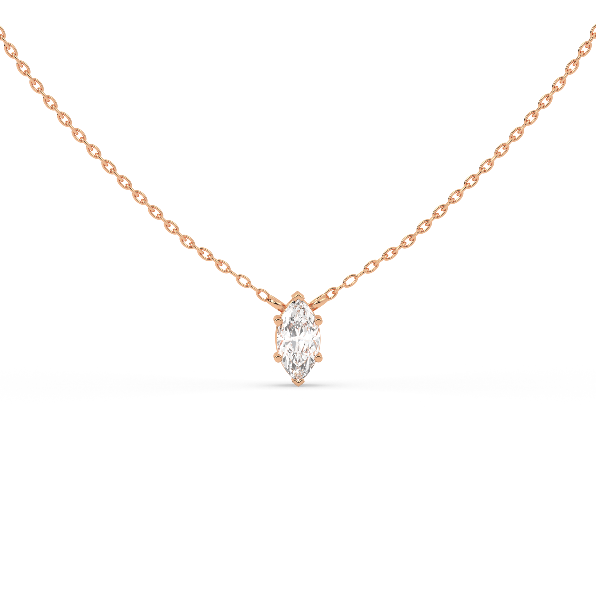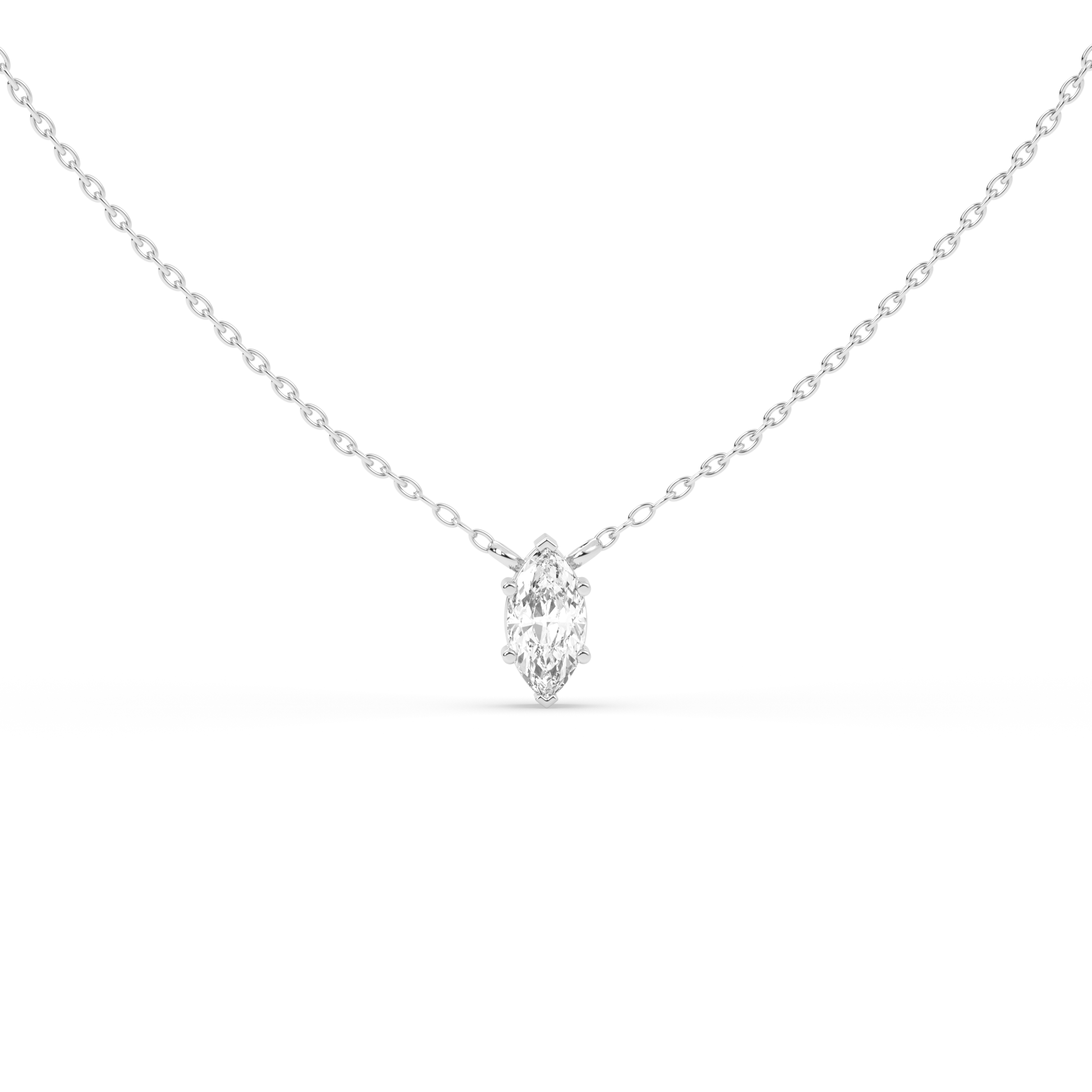 Pure brilliance in a sleek solitaire setting - ethically crafted lab grown diamond pendant for modern elegance. The elongated marquise-cut diamond mirrors the delicate form of a single petal in bloom, creating a look that is both timeless and striking. The refined chain enhances the pendant’s presence, making it perfect for everyday sophistication as well as special occasions.