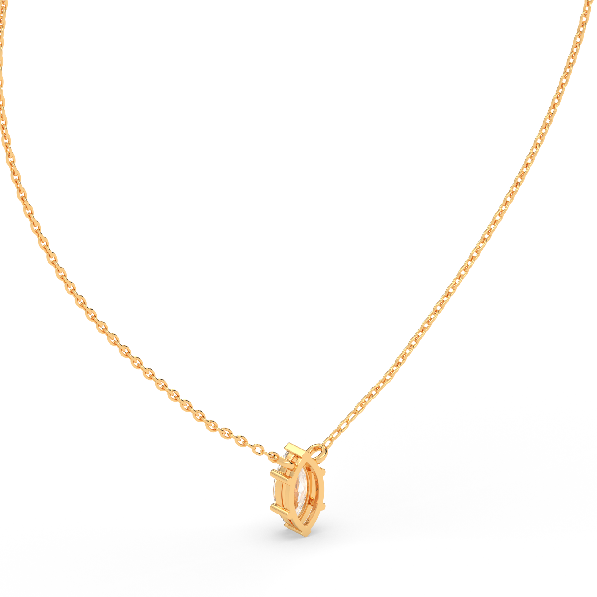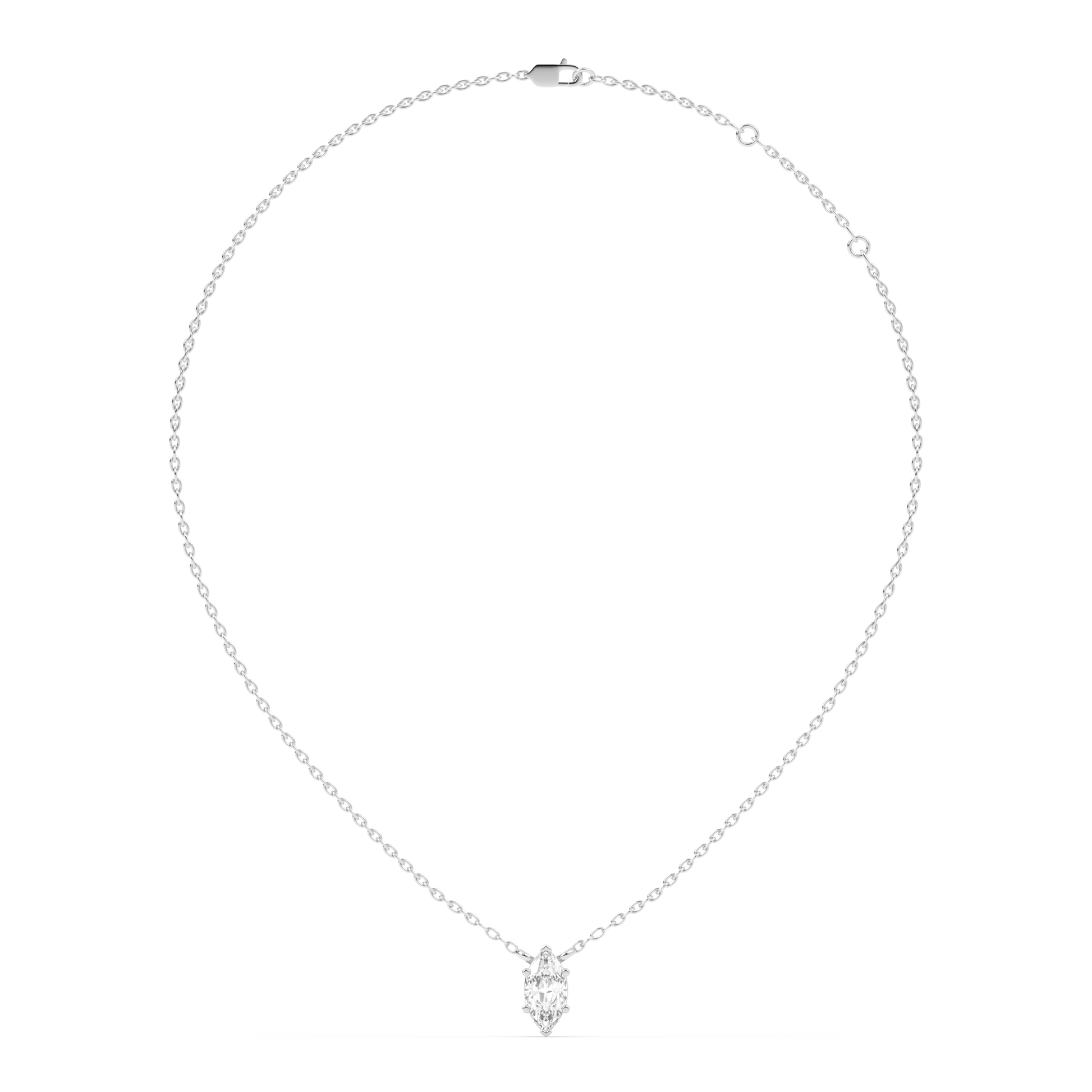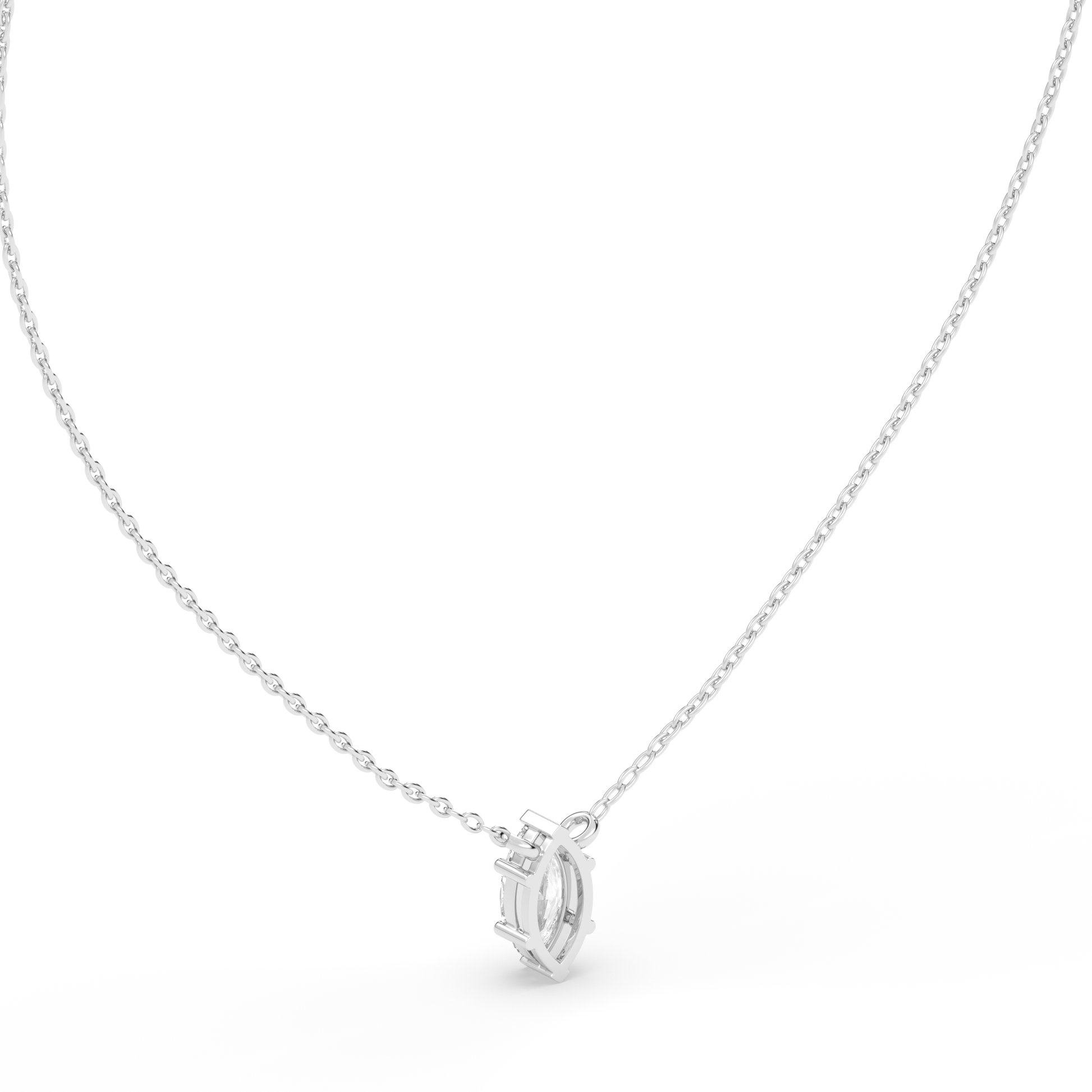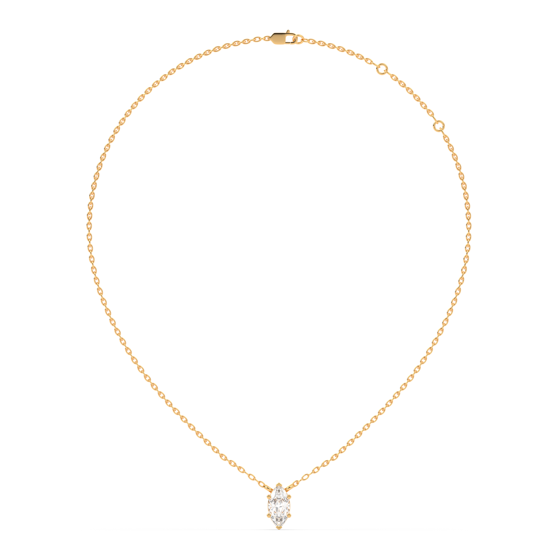 Pure brilliance in a sleek solitaire setting - ethically crafted lab grown diamond pendant for modern elegance. The elongated marquise-cut diamond mirrors the delicate form of a single petal in bloom, creating a look that is both timeless and striking. The refined chain enhances the pendant’s presence, making it perfect for everyday sophistication as well as special occasions.