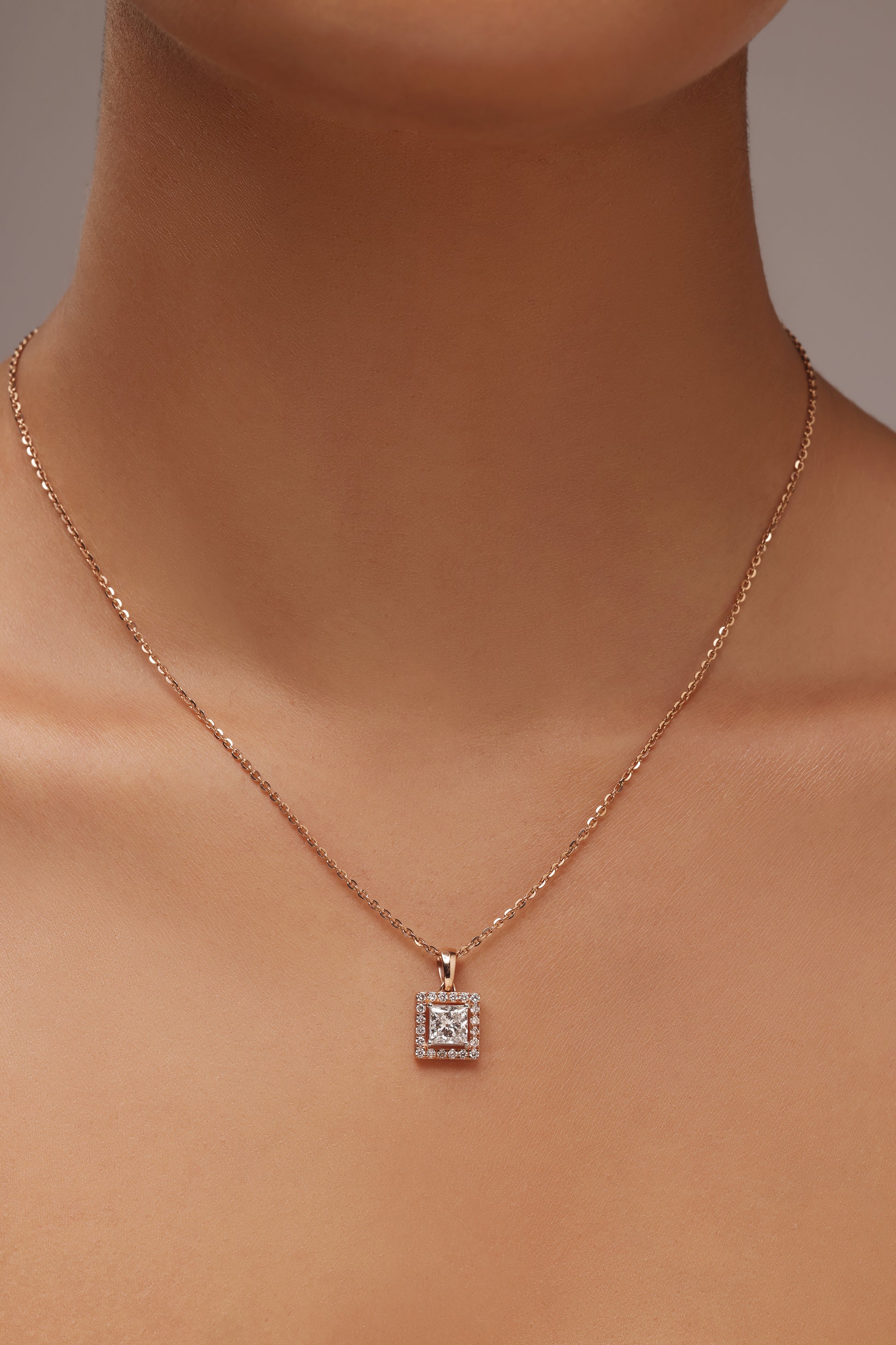 Princess cut Halo Diamond Pendant