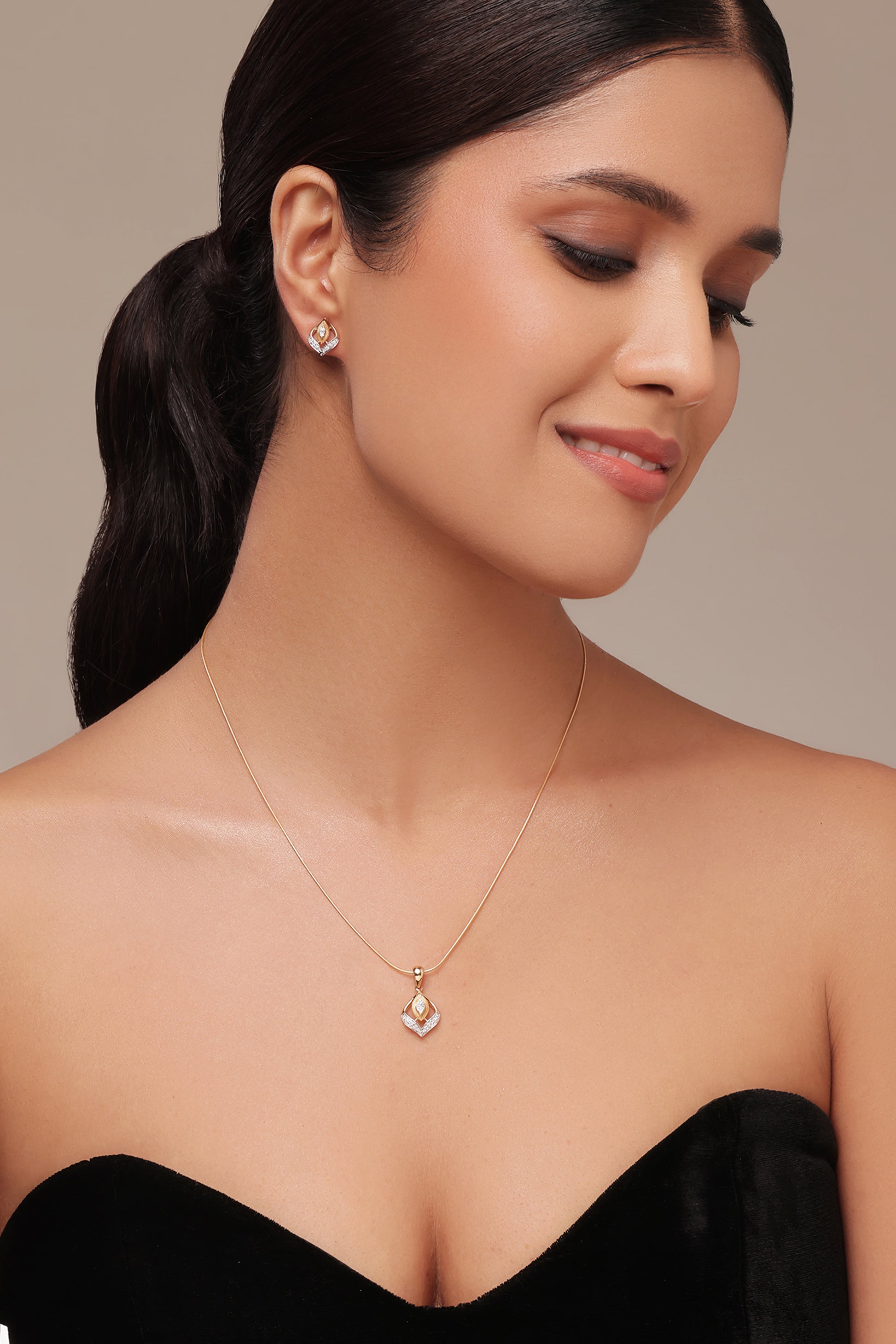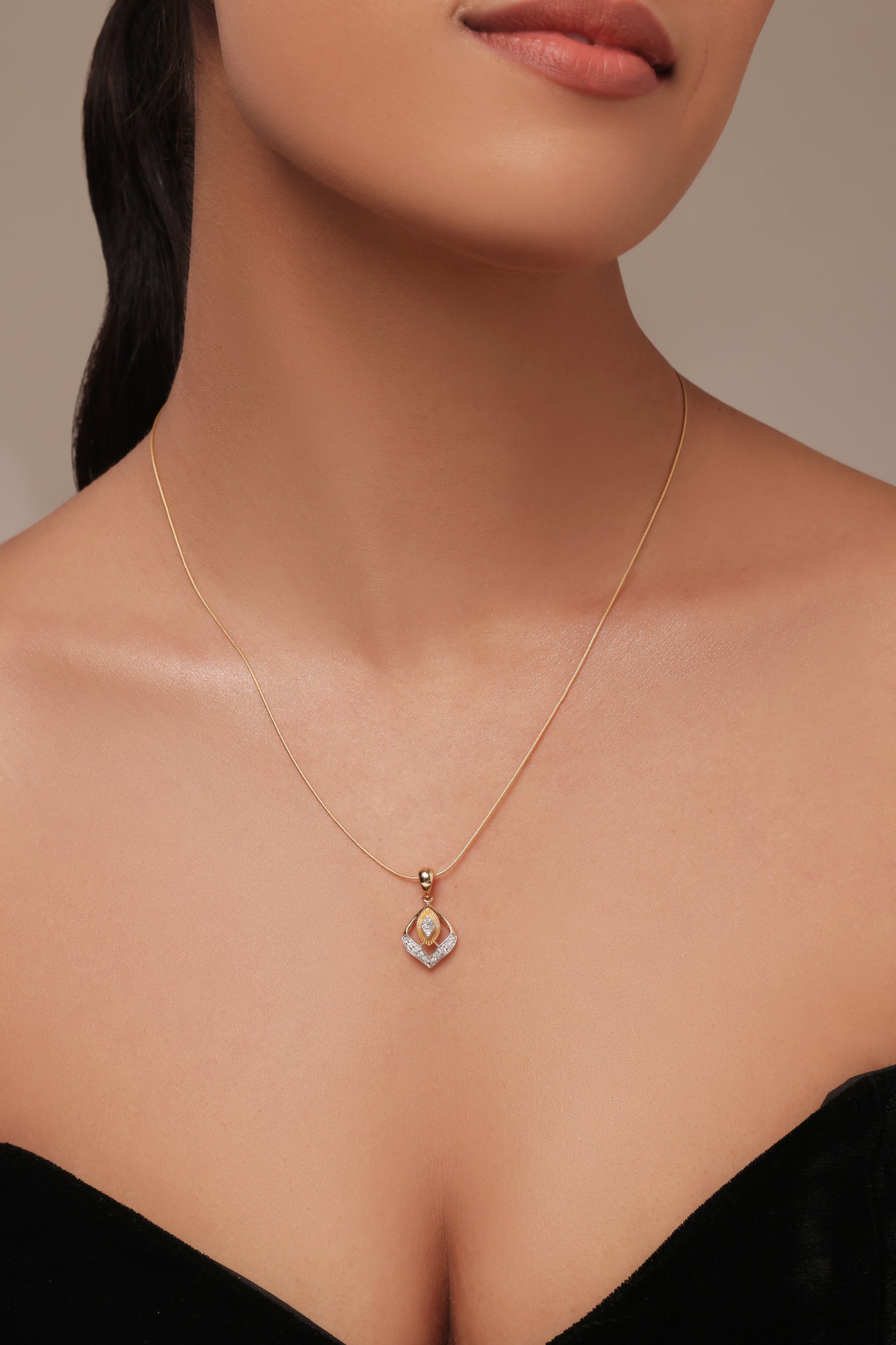 This lab grown diamond cluster pendant blends soft curves with a refined geometric silhouette, crafted in warm yellow gold and accented with pavé lab-grown diamonds. At its centre sits a delicate solitaire, catching the light with an effortless glow. A minimal yet striking design-perfect for a subtle statement layered with your favourites.