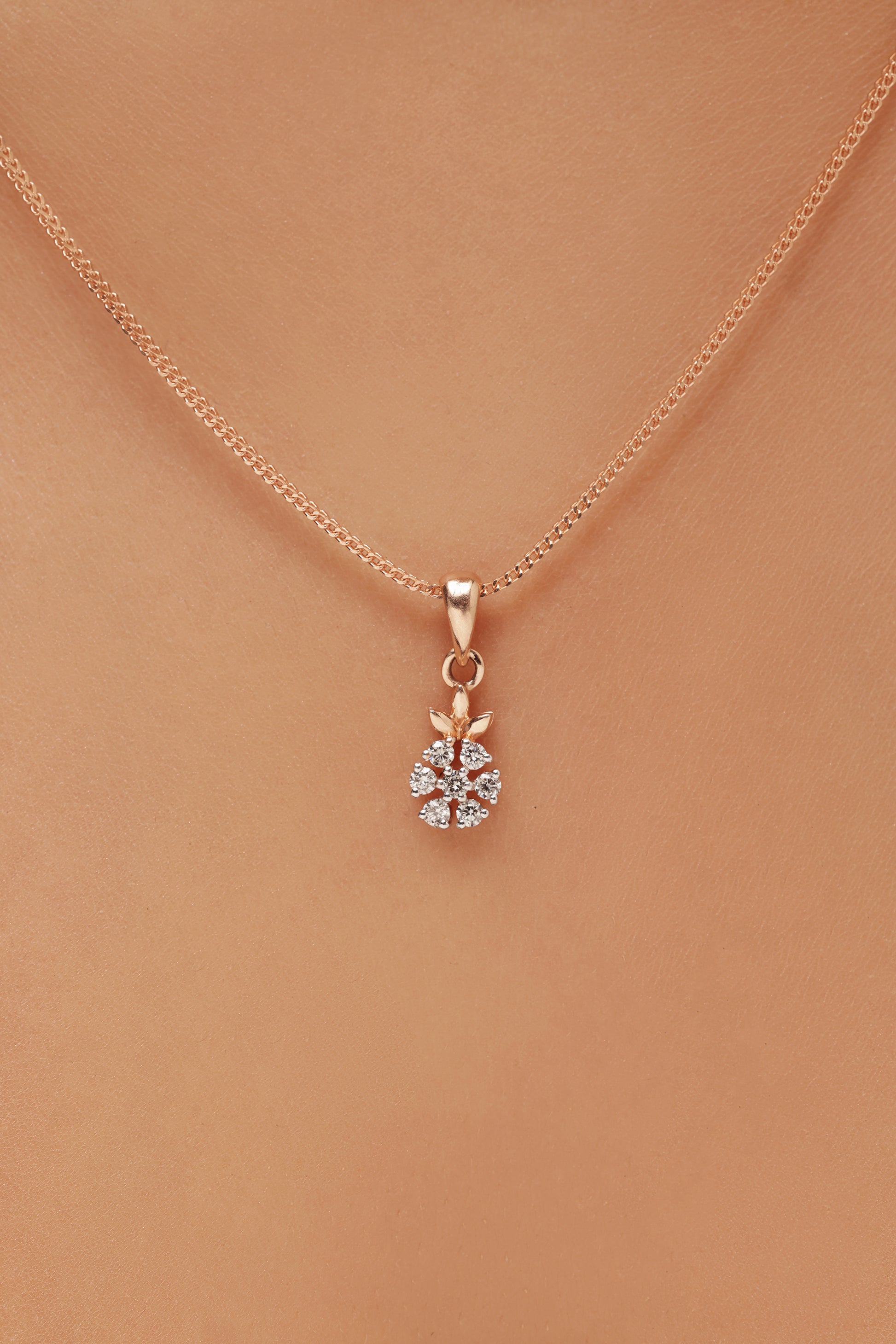 This delicate pendant features a gold bail from which hangs a blossoming flower. The central cluster is composed of seven brilliant-cut round lab grown diamonds, each meticulously secured in a classic prong setting to maximize its sparkle and brilliance.