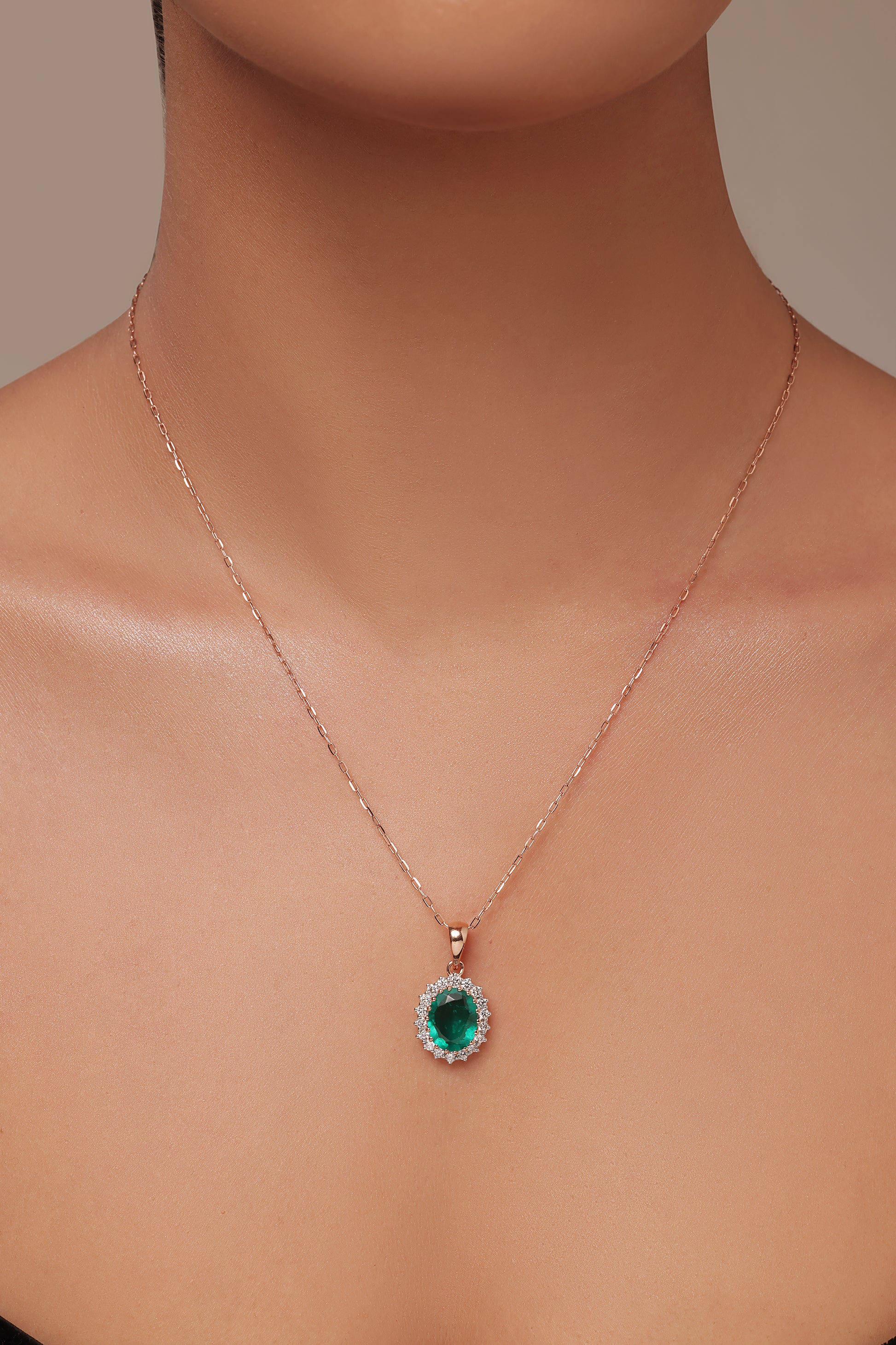 These earrings feature a beautiful emerald stone at the center, glowing with a deep, captivating green. A neat halo of sparkling lab-grown diamonds surrounds the gemstone, adding softness and brilliance. The design is striking and refined-made for someone who loves elegant jewellery that always stand out.