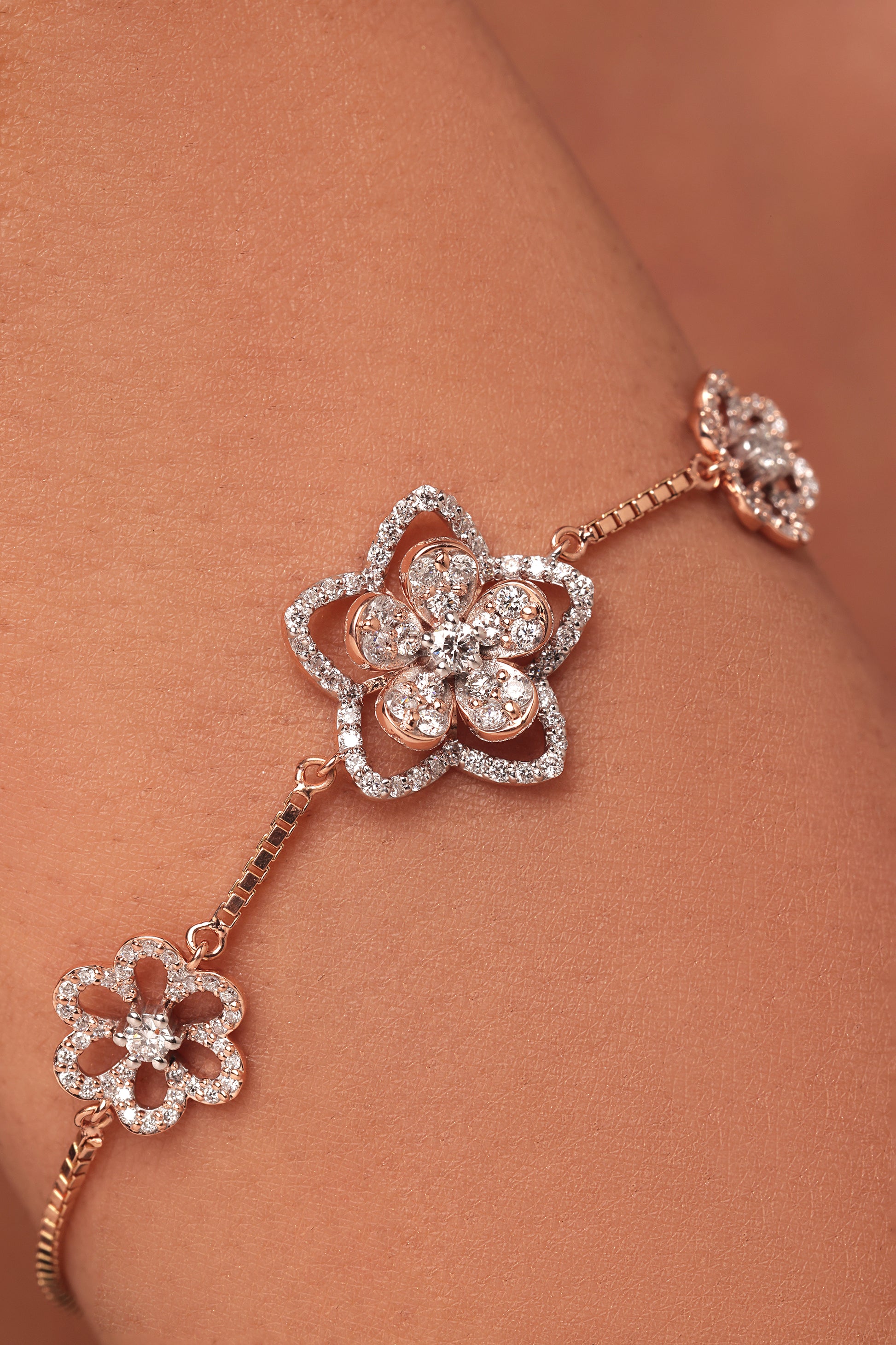 This charming lab grown diamond bracelet features delicate flower motifs, each sparkling with brilliant round lab grown diamonds, linked by a slender chain for an elegant and graceful look.