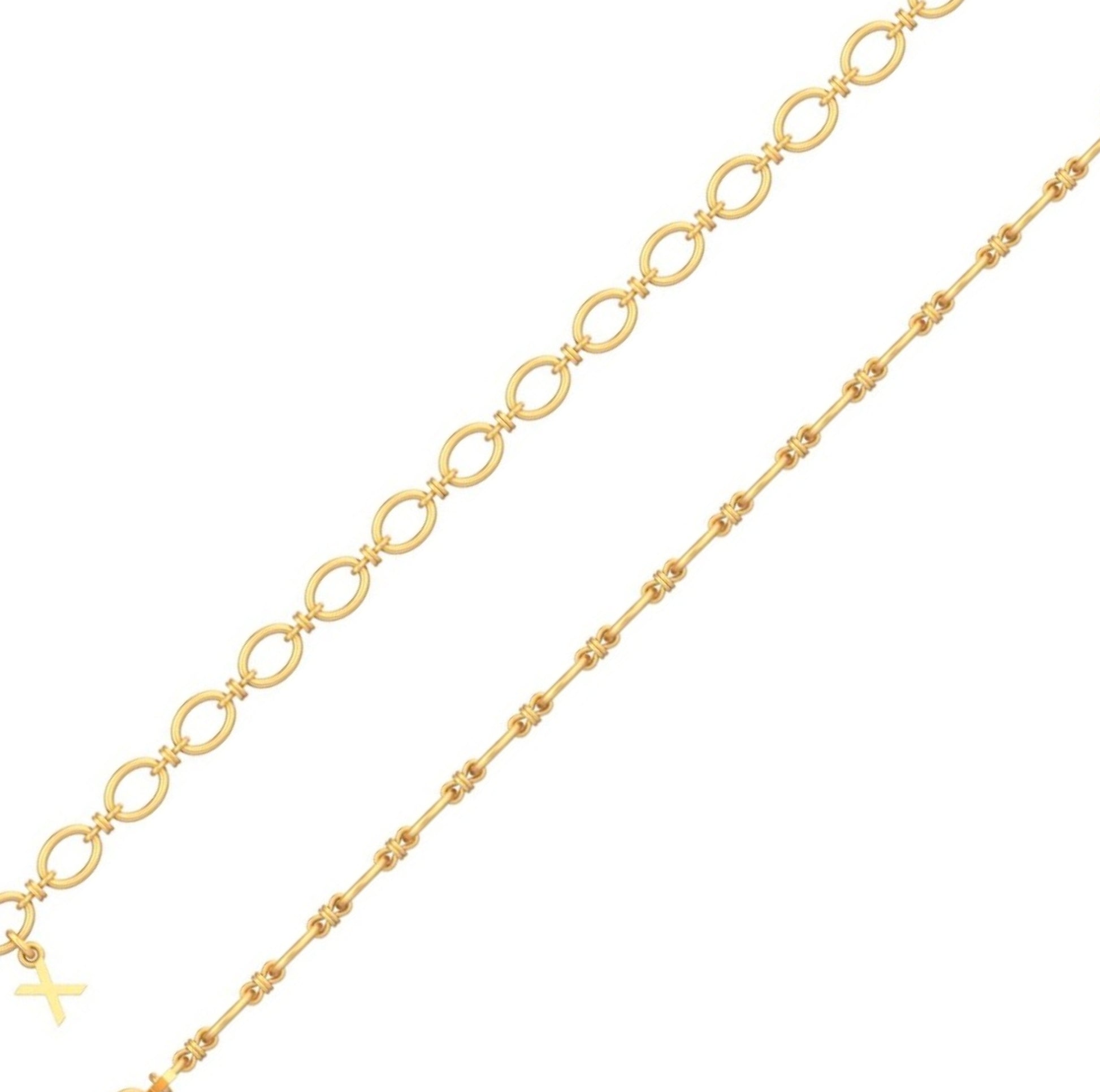 A perfect blend of modern style and timeless luxury, this piece is crafted entirely in gold jewellery. The solid gold necklace features a series of elegant, interlocking circles and a signature charm, making it an effortless addition to any look. This modern gold chain is a perfect staple for everyday elegance.