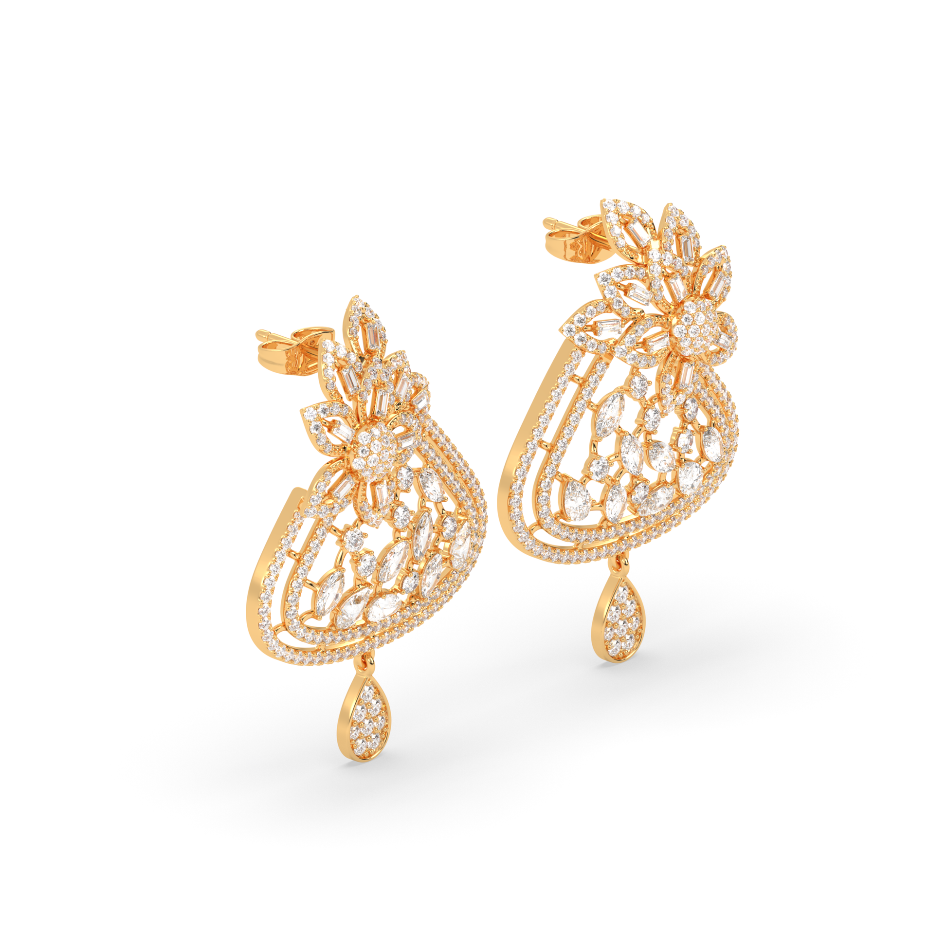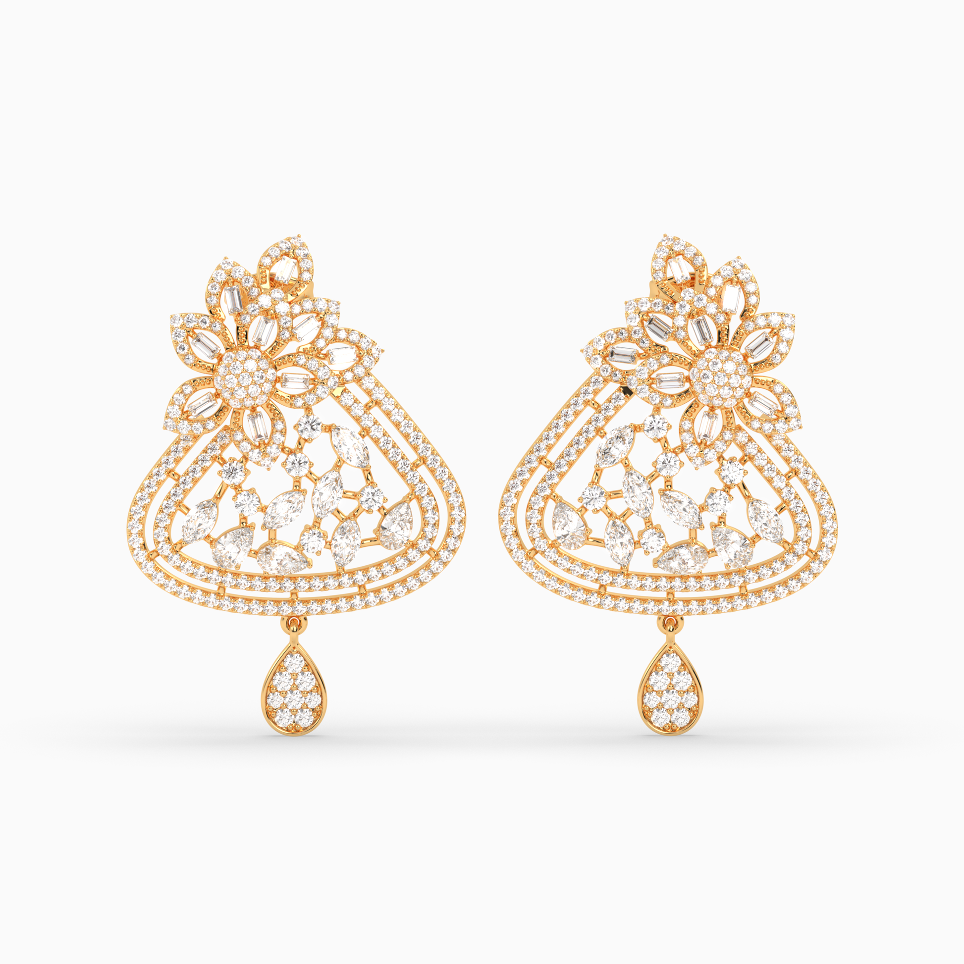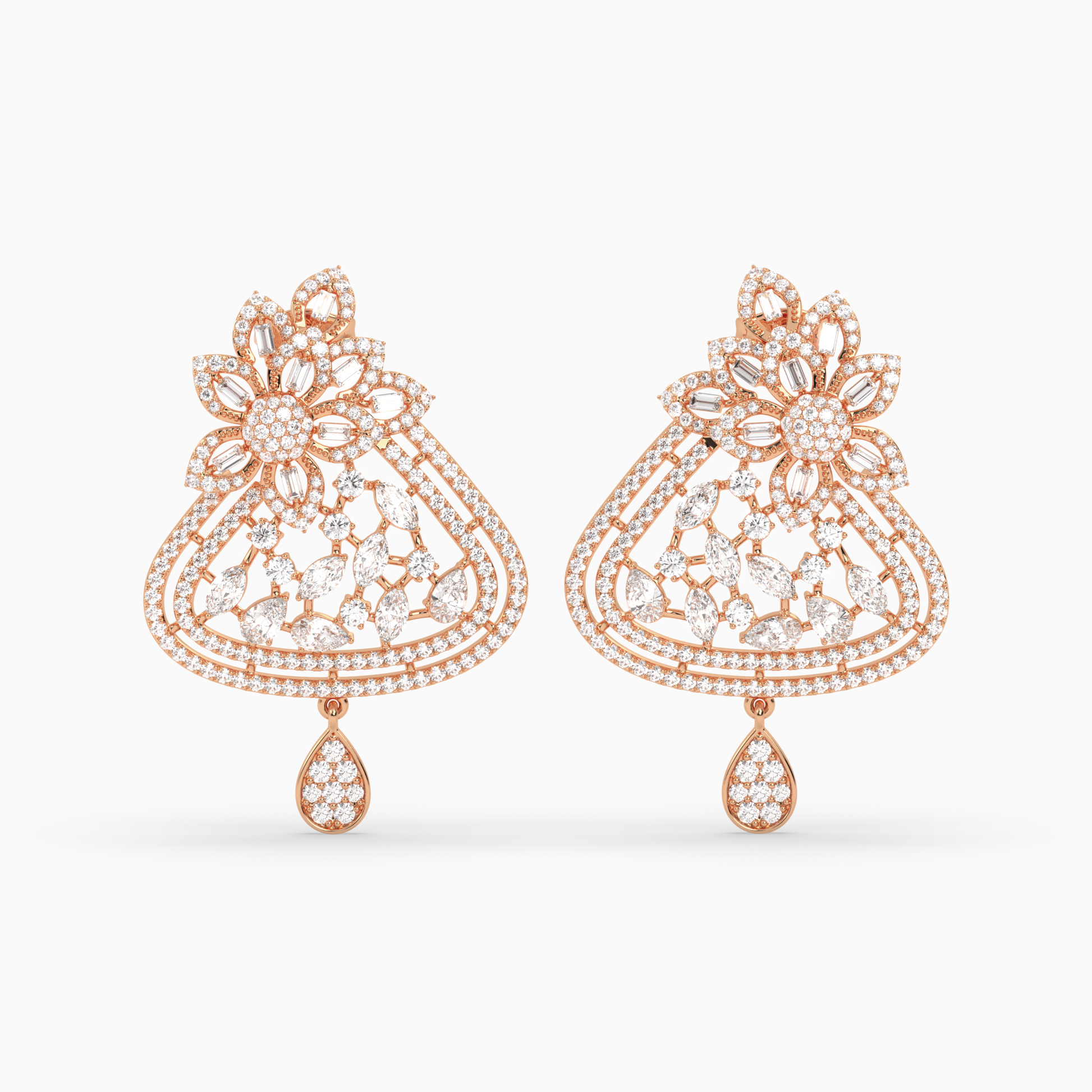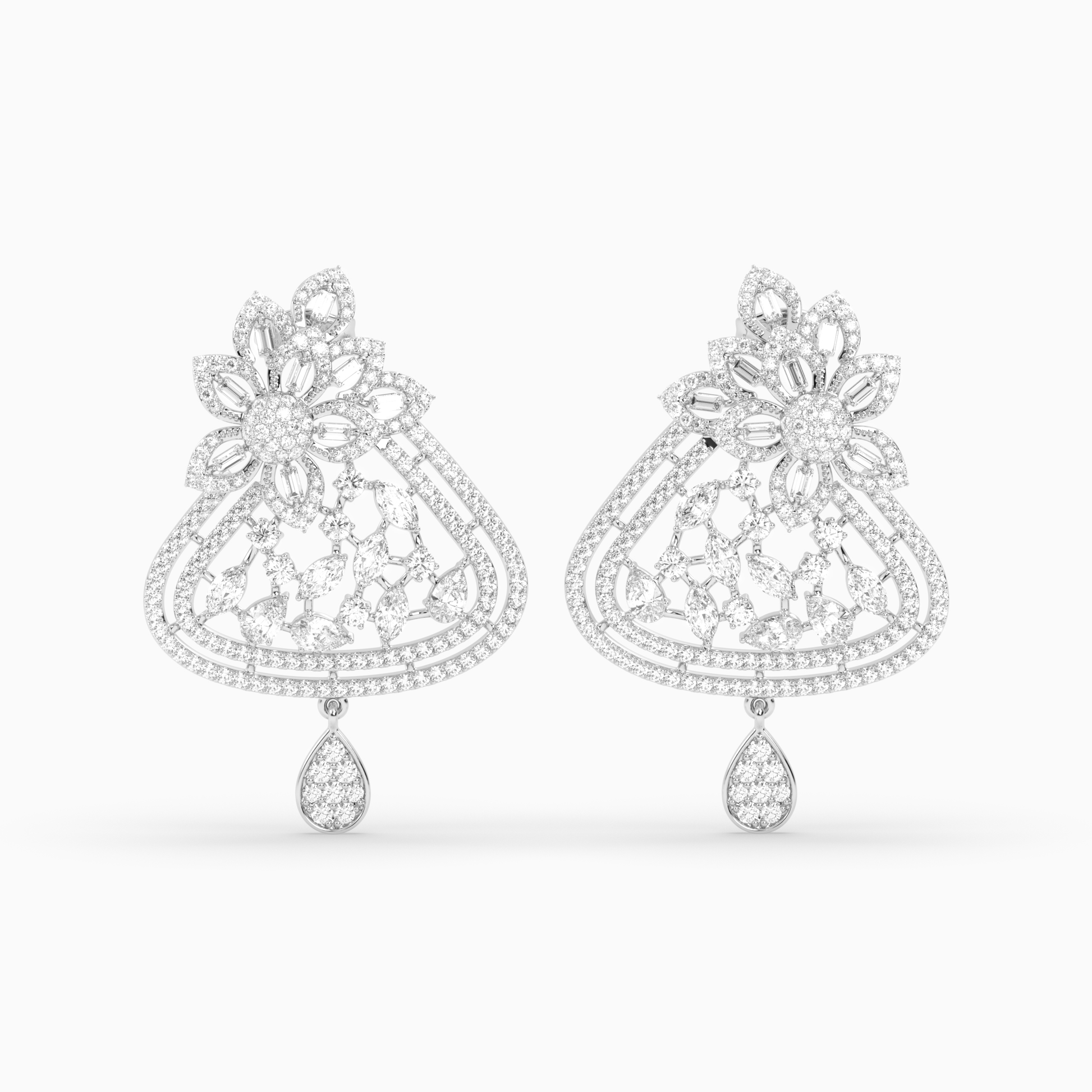Baguette and Marquise Diamond Floral Cluster Earrings