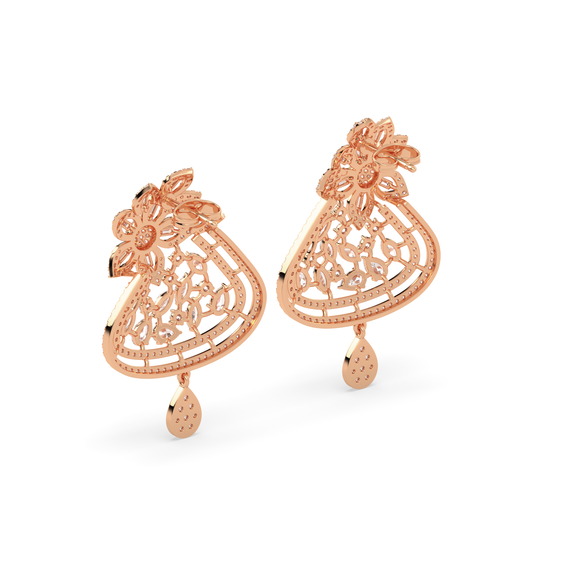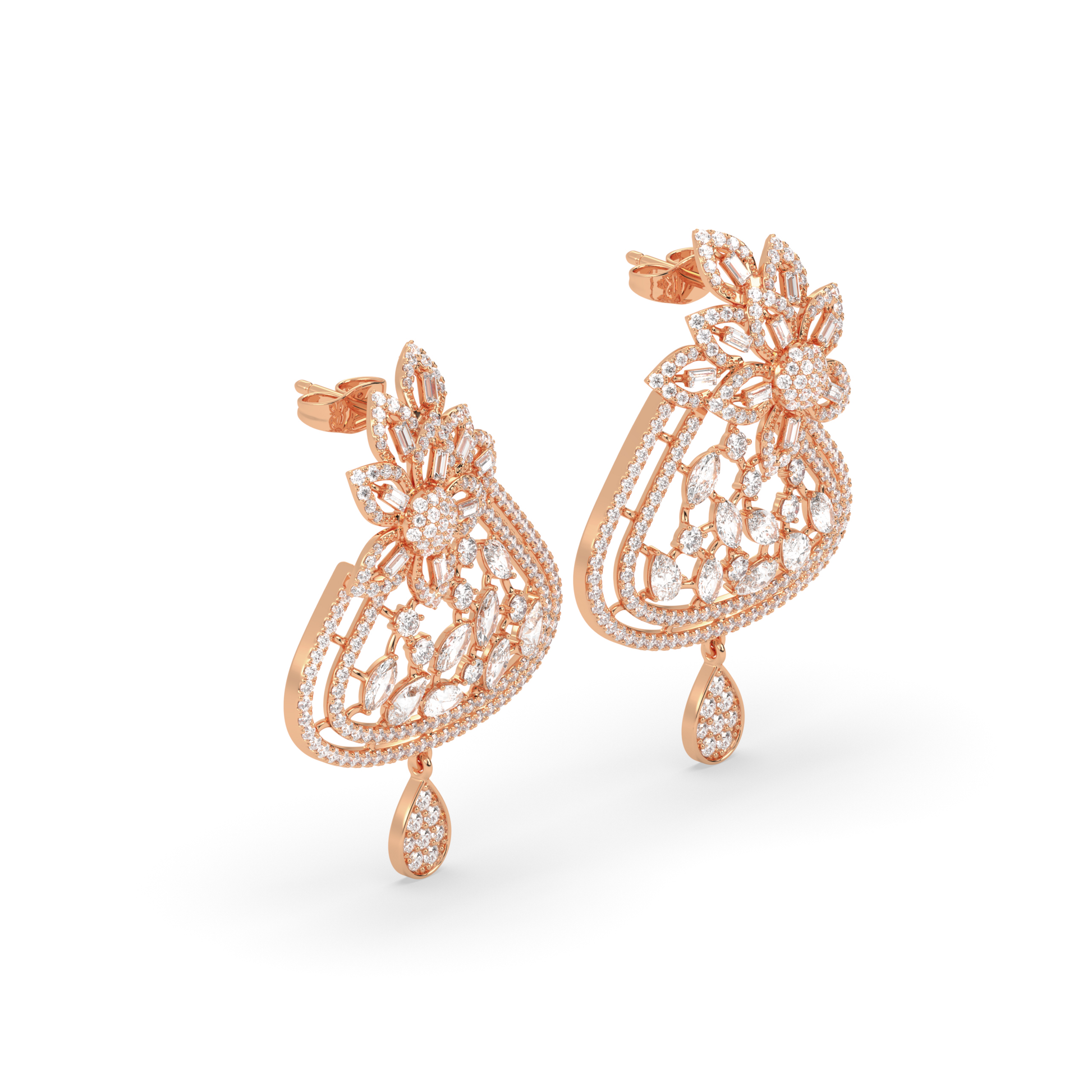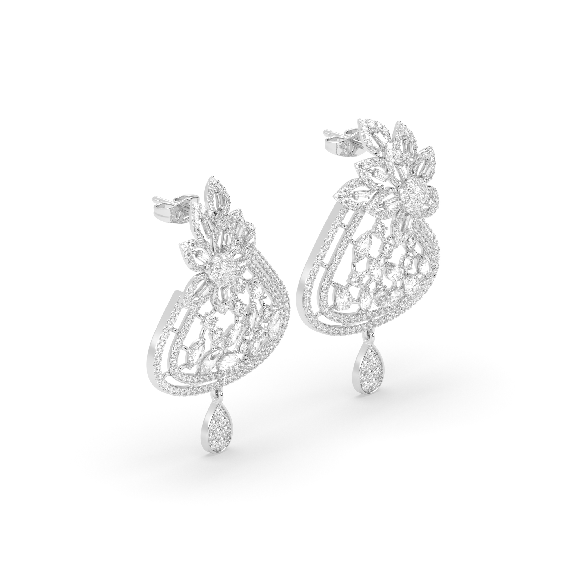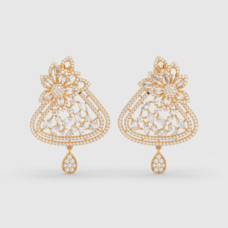 These earrings feature a graceful floral form brought to life with lab-grown diamonds. A softly layered silhouette frames marquise and baguette cuts, arranged to create depth and natural movement. Thoughtfully detailed and finely finished, the design feels elegant yet composed. A timeless piece that reflects modern craftsmanship and a quiet appreciation for beauty that lasts.