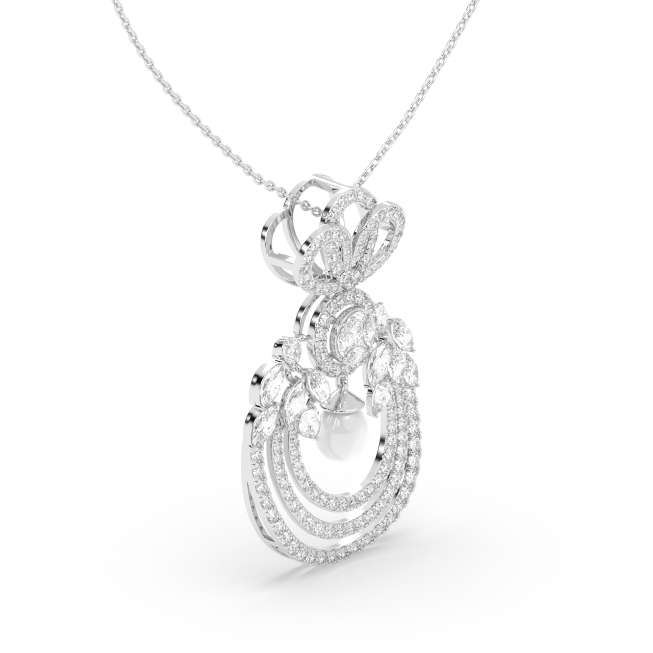 Tiered Diamond Pendant with Hanging Pearl Accents